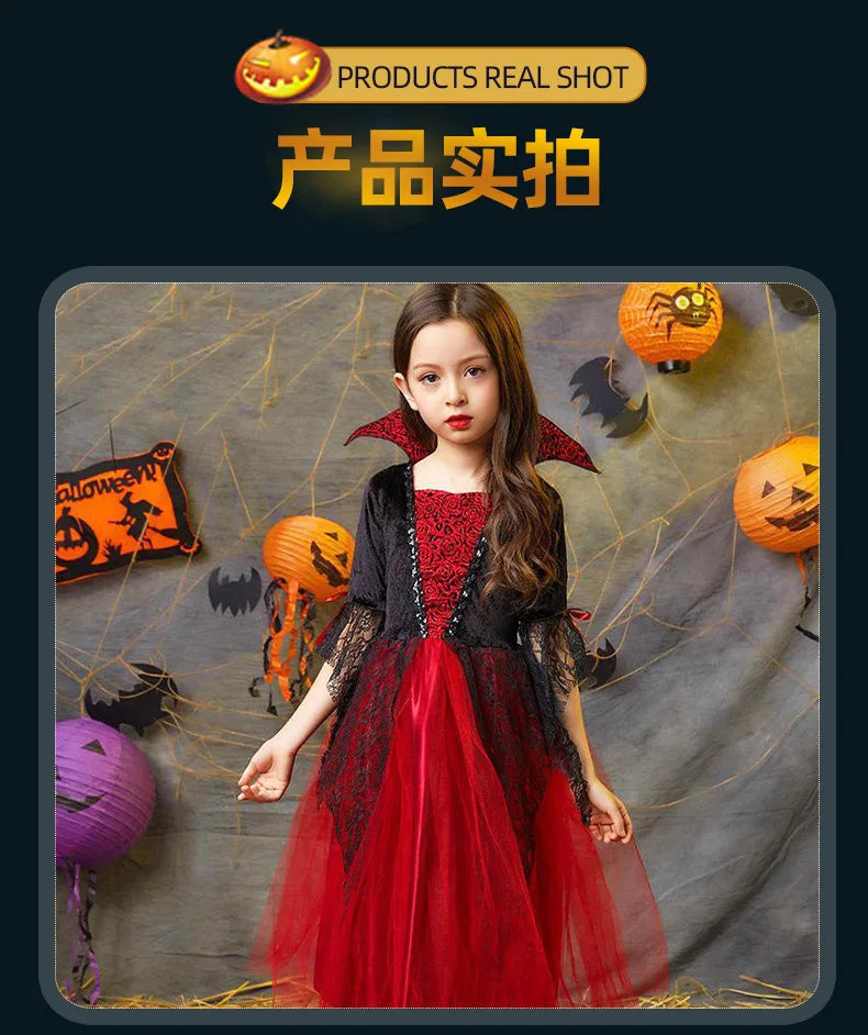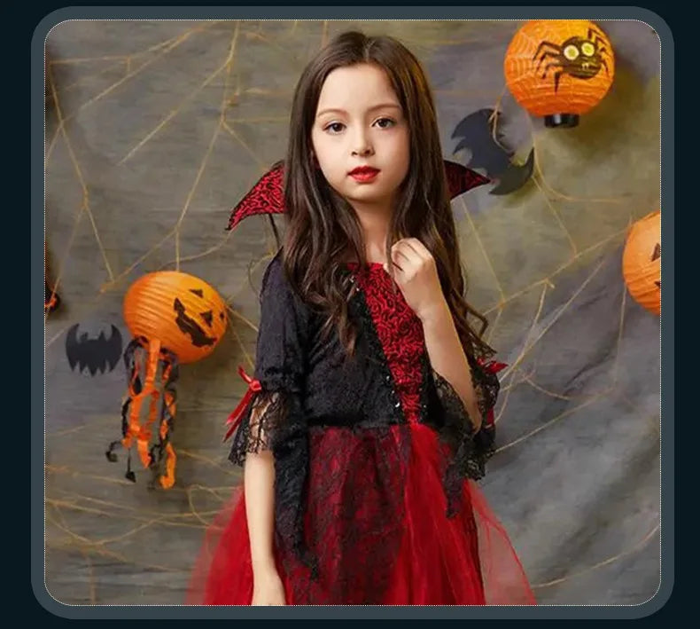 Step into the spotlight with our 'kids Vampire carnival Costume' a dramatic blend of gothic charm and carnival flair. Designed for girls and boys, this outfit turns your child into a stylish vampire perfect for halloween parties, school parades or dress-up play.