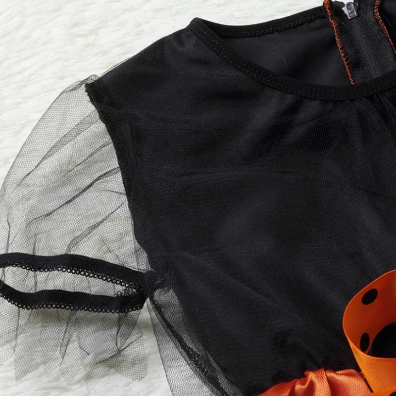 - Orange Witch dress: A layered tulle dress orange and black with a bow on the waist for an elegant look.