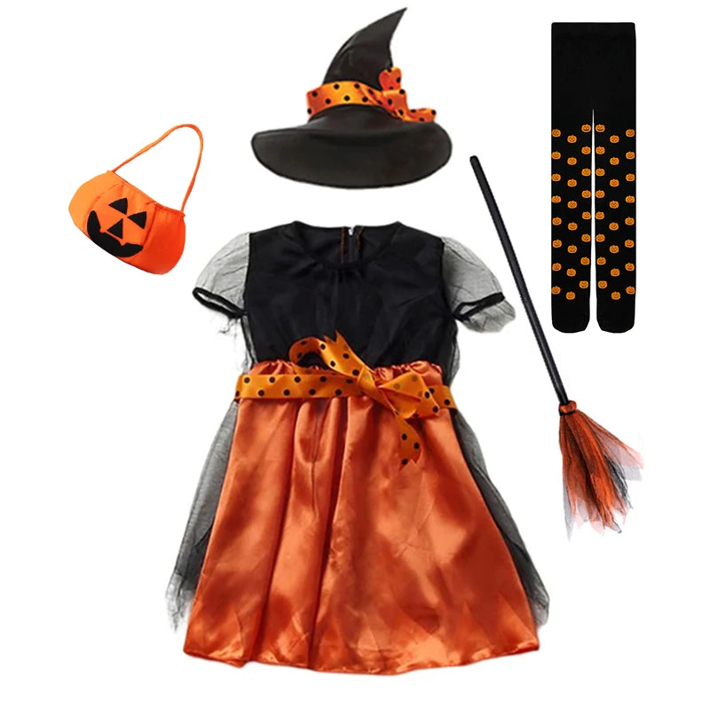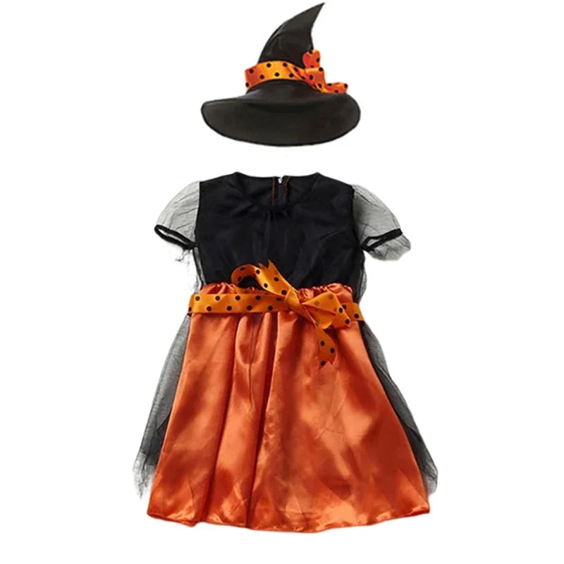 Girls Orange Witch Halloween Costume- Carnival Cosplay Outfit.