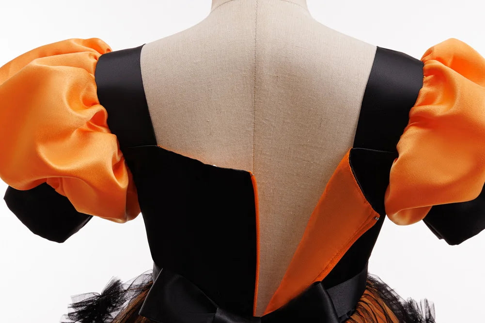 Let her shine like the star of the harvest in our playful dress perfect for halloween and performing. Designed for parties parades and magical moments. This dress turns any child into a pumpkin princess with a flair.